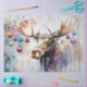 Uma pintura química de uma alce majestosa com suas alças decoradas com Enfeites de natal coloridos. O alce fica numa terra maravilhosa de inverno, rodeada de árvores cobertas de neve e de aspersão de torcida festiva. O uso pelo artista de cores vibrantes e pinceladas delicadas dá vida à cena, capturando a magia da temporada de festas. Com um olhar curioso, o alce parece estar desfrutando das decorações de férias, trazendo alegria para a paisagem de inverno "pintura de alce", "arte de Natal", "trabalho de arte de inverno", "arte animal" e "decorações de férias" em suas descrições e títulos. Um alce com Enfeites de natal nas suas galhadas numa paisagem de inverno." #mooseart, #christmasart, #winterart, #animalart e #holidaydecorations.