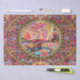 Padrão de dissociação do pavão, cor rosa, dourado e azul das flores florais persas.