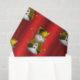 Um padrão giro e caprichoso de pequenos bonecos de neve em colete de veludo e chapéu de ouro para iluminar seu presente de Natal embrulhando esses feriados.