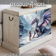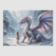 Um design surpreendente com um dragão diante de uma mulher guerreira numa paisagem suja e gelada. As cores suaves e leves com matizes violetas brilhantes criam uma atmosfera mágica e serena. Siga-nos no Facebook no DecoupAngel para mais inspiração!