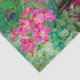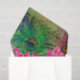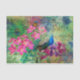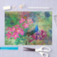 Uma colagem de flores, folhas e um pavão sobre um fundo musical.