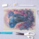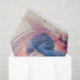 Um lindo Elefante é enquadrado por designs adoráveis e um motim de flores coloridas, tudo em pinks e blues complementares