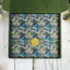An abstract diamond pattern featuring a blue, green, and gold frozen winter landscape.