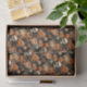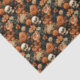 Um design escura elegante com crânios antigos rodeados de flores laranja queimadas sobre fundo temperado. Perfeito para empacotamento de presentes góticos, festas de Halloween, ou páginas românticas de góticos. Essa mistura de macabro e beleza a torna ideal para fãs de flores escuras, e estilo de Halloween inspirado na safra.