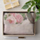 Um belo pavão sentado em um galho com flores cor-de-rosa decora este papel de seda estilo vintage.