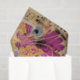 Uma colagem de um pavão, flores roxas e cor-de-rosa, e ouro percorre um fundo musical. Perfeito para embrulho de presente elegante ou para projetos de desvinculação e artesanato de papel.