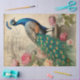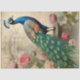 Imagem VERTICAL 3 de 4 Peacock Floral Francês de grande escala para desacoplamento; 2 horizontal e 2 vertical. Um elegante Peacock fica em um jardim floral francês colidido com uma jaula de pássaros da efemera vintage e uma elegante configuração de jardim de rosa multicores. Papel de pergaminho envelhecido e angustiado, fundo creme com flores incrivelmente pintadas, cor-de-rosa pincel, amarelas e brancas cremosas, folhagem com mudas e folhagem verde-seca bonito. Há uma textura frágil de estalos que adiciona uma essência envelhecida e antiquada, guiando elementos efêmeras de escrita manual e tipografia. Esta trabalho de arte foi projetada graficamente pela artista internacionalmente licenciada Audrey Jeanne Roberts, autora. MSP0118