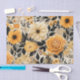 Um bonito padrão de ouro e flores amarelas e folhas decoram esse papel de tecidos que é excelente para o empacotamento de presentes ou para projetos de artesanatos e desacoplamentos.