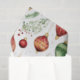 Enfeites de natal e flores em forma festiva, com cores verdes, vermelhas e brancas