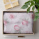Papel de tecido de Natal rosa numa encantadora aquarela vintage. Apresenta belas bolhas decorativas em tons claros e cor-de-rosa. Os sotaques florais de aquarelas e o verde de cor clara trazem interesse a este design doce.