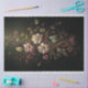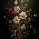 Esta obra de arte apresenta um buquê etéreo de flores silvestres e delicadas florações, tecidas juntas em uma composição graciosa e fluída contra um fundo escuro e sombrio. As pétalas douradas pálidas contrastam-se lindamente com a folhagem verde profunda e ferruginosa, criando uma sensação de elegância vintage e romance gótico. Vinhas e gavinhas se retorcem, adicionando movimento, dando à peça um sentimento sonhador e quase encantado, como uma ilustração botânica esquecida de uma era perdida. O efeito geral é ao mesmo tempo suave e misterioso, perfeito para adicionar um charme de um mundo antigo a qualquer projeto artístico.