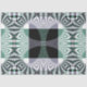 Espelhamento infinito de mandala de quatro pétalas, paleta colorida translúcida azul-esverdeada, design moderna. O padrão fratural com brilho de vidro transforma o espaço e o harmoniza.