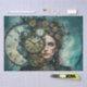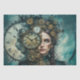 Transforme o seu projeto de artesanato com este magnífico papel de dissociação que inclui um design botija de vapor. Uma mulher, enfeitada com elementos de latão e ouro, é cercada por relógios e engrenagens intrincadas. O fundo é uma surpreendente turquesa, misturando vários tons para criar um efeito dinâmico e mesmerizador. Perfeito para qualquer entusiasta da dissociação, este papel de tecido traz um toque de elegância e de timeless às suas criações. Ideal para decoração de caixas, quadros e outras superfícies, este design irá adicionar um talento artístico único aos seus projetos.