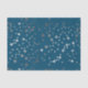 Estrelas de prata dispersadas em produtos azuis da meia-noite e em favores do partido.