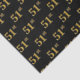 Este design de papel de tecido apresenta o número ordinal "51ruas" com uma coloração falsa/imitada em forma de ouro. Ele também apresenta um fundo preto colorido. Talvez possa ser usado com presentes para o cinquenta primeiro aniversário de alguém, ou talvez para o cinquenta primeiro aniversário de casamento de um casal casado, ou para outro evento ou ocasião de 51 ruas. [~Z0000152]