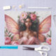 Papel De Seda Fada Castanha com Asas e Peônias Rosa