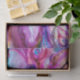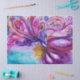 Fada das flores vibrante e colorida,redemoinhos florais e uma planta de borboleta mágica,pintura contemporânea em aquarela em cores iridescentes roxo, violeta, rosa, fúcsia, azul, verde, dourado e prata por Bulgan Lumini (c)