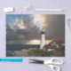 Farol que brilha brilhantemente em uma tempestade. Tag: oceano, mar, costa, rochosa, rochas, farol, luz, tempestade, beleza, bonita, litoral, casa, brilhante, "calma antes da tempestade", nuvens, obscuridade, foto, fotografia, incrível, fantástica, arte,