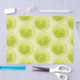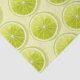 Um padrão de fatias frescas e suculentas de limão em tons brilhantes e vívidos de verde limão, com uma textura aquosa que lhe dá aquele aspecto recém cortado. Eles são colocados sobre um fundo amarelo claro / verde para um visual brilhante e de verão.