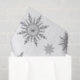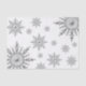 Emparelhe o papel de tecidos falso prata festivo de inverno com os sacos de presentes correspondentes para criar um conjunto coordenado de doação de presente. Este elegante papel de tecido do inverno personalizado apresenta intrincadas designs de floco de neve de cinza prateada com fundo branco. Nota: Os flocos de neve não são um design metálico elevado. Eles são um design impresso plano.