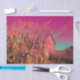 Abstrato de galpão rústico da fazenda, design de pintura digital surreal. A fazenda ocidental inspirou o campo de milho e o papel de tecido de decoupage de artesanato rosa-lacrimogênio. Imagem copyright Marg Seregelyi Fotografia.