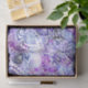 Um design floral moderno desenhado à mão com flores, formas geométricas boho, padrão de folha, estilo mandala com cor d'água azul, roxa e lavanda pintada à mão