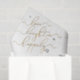 Um grande complemento para a embalagem do presente da sua festa de noivado, este papel tissue personalizado preto, branco e dourado com a inscrição 'Para o Amor, o Riso e Felizes para Sempre' certamente será apreciado! Sobre um fundo branco, o sentimento de felizes para sempre é apresentado numa bela caligrafia manuscrita em folha de ouro falso. Os nomes e o restante do texto estão numa fonte preta elegante sem serifa, para um design sofisticado. Este papel tissue faz parte de um Conjunto Coordenado, então certifique-se de procurar na coleção abaixo por mais produtos coordenados com este tema.