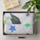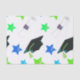 Papel tecidular feito para os presentes de graduação, este design é colocado sobre um fundo branco. Há estrelas azuis e verdes coloridas e bonés de formatura pretos com detalhes azuis e verdes. Excelente para suas necessidades de presentes, peça a sua hoje! Trabalho de arte criado por: Prettygrafik design (https://www.etsy.com/shop/Prettygrafikdesign)