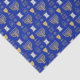 Feliz Hanukkah, Jewish Holiday Tissue Paper. Um elegante e feliz padrão Hanukkah de símbolos judeus do menorah, estrela de David, rolando, em ouro numa caneca azul escura de fundo. Um presente de na moda para uma festa de amigos e família judeus nesta temporada de férias.