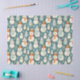 Papel de tecido de presente de Natal com bonecos de neve em ouro e turquesa. Um doce padrão confortável de boneco de neve com vibrações vintage.