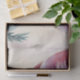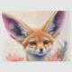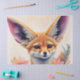 O papel tecidular apresenta o retrato floral de uma fennec em arte botânica silvestre de cor brilhante. A adorável raposa desértica pequena com orelhas grandes encontra-se entre flores de pêssego roxas e rosadas, num trabalho de arte estético feminino e macio.