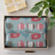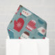 Um padrão de férias divertido de luvas de inverno aconchegantes. Alguns têm um aspecto de tricô, outros têm um simples floco de neve. O esquema de cores é vermelho, marrom, branco e bonito tons de azul. O fundo é um azul claro com um padrão sutil de floco de neve. Estes tecidos adicionam um toque festivo alegre aos seus sacos de presente de Natal.