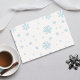 Celebre a estação com papel de tecido enfeitado com flocos de neve azul delicados sobre um cenário moderno e limpo, evocando uma serena terra maravilhosa do inverno. O design é festivo e sofisticado, fazer a maneira perfeita de compartilhar seus presentes de férias com a família e os amigos.