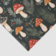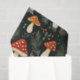 Esta ilustração encantadora mostra uma paisagem florestal festiva com cogumelos vermelhos e castanhos pintados, folhas ocas e bagas vermelhas vibrantes, intercaladas com ramificações de pínus. O fundo escuro destaca os tons quentes e terríveis dos cogumelos e os ricos verdes da folhagem, criando uma atmosfera balnear, porém acolhedora. A brincadeira evoca um sentido de magia de inverno, misturando a natureza com um espírito sazonal.