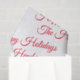 Este papel festivo vermelho e branco é personalizado com Feliz Feriados ou sua própria mensagem especial de feriado e seu nome, fazer uma maravilhosa adição a um presente. Seria perfeito adicionar apenas uma folha a um saco de presentes com algum papel vermelho ou branco.