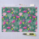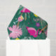 Festa de picleball tropical super engraçada com flamingos cor-de-rosa, bebidas e folhagem tropical.