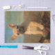 Um filhote de cachorro velho de um Frenchie de oito semanas, fawn fielmente a fêmea, inclinando-se curiosa contra um registro knobby da árvore. Uma imagem com olhar do vintage, um presente para o cão e os amantes do buldogue francês. Um cão popular do companheiro fotografou por Katho Menden. http://www.zazzle.com/kathom_photo