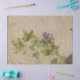 Pequenas flores roxas e folhas verdes em um galho que se estende por um fundo claro e curvado do que fundo. Perfeito para desacoplamento, artesanatos ou embrulhamento de presente. Certifique-se de checar a bolsa de presente!