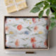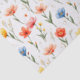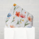 Lindas flores azuis, vermelhas, rosadas e amarelas flutuam sobre um fundo branco neste lindo papel tissue para todas as ocasiões. Muito doce e feminino na aparência.