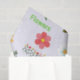 Flores e rosas cor-de-rosa com texto em padrão de fundo cinza.