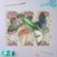 Borboletas coloridas diferentes e uma flor de laranja cercada por flores roxas sobre um fundo de partituras. Perfeito para desacoplamento, artesanatos ou embrulhamento de presente. Certifique-se de checar a bolsa de presente!