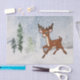 Feliz papel de tecidos de Natal e Feliz ano novo com um veado bebê alegre correndo em um lindo fundo de neve com cor d'água. Personalize-o com sua mensagem pessoal para adicionar um toque especial. Para mais personalização, clique no link "Personalizar" e use nossa ferramenta design para modificar este modelo.
