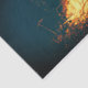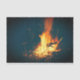 Papel tecidular com imagem de uma fogueira/fogueira queimada. Azul escuro - cor preta com amarelo vivo, laranja e fogo vermelho queimando alguma madeira.