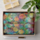 Folhetos coloridos modernos com cores brilhantes de padrão uniforme. Modelo de papel tissue personalizável