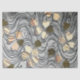 Design graciosa de folhas em forma de coração, em vermelho e ouro, flutuando na superfície da água de prata com ondulações onduladas.