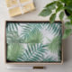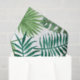 O design apresenta ilustrações atraentes de frondas palmeiras e folhas. Eles são pintados em aquarela por um artista qualificado. As folhas verdes parecem absolutamente lindas!