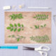 Papel De Seda Folhas verdes plantas de folhagem desbotadas sépia