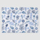 Papel De Seda Folk Art Botânico Impressão Azul Folhagem Branca