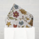 A charming folk-art–inspired pattern featuring cozy cottages, hand-painted flowers, sweet birds, hearts, stars, and berry sprigs scattered across a warm, speckled cream background. The earthy palette of brick red, mustard gold, dusty blue, and soft green evokes rustic country living and nostalgic handmade charm. Playful yet timeless, this design feels like a storybook village brought to life.