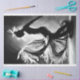 Uma silhueta cativante de uma dançarina em movimento, seu traje e cabelo fluindo graciosamente com seus movimentos. A paleta monocromática enfatiza a fluidez e a elegância da dança, enquanto a iluminação traseira dramática cria uma aura mística, destacando o contorno da dançarina contra o pano de fundo escuro.